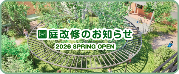 静かな住宅地にある園です。太陽の光を浴び、風を感じ、自然のぬくもりを感じ、ゆったりと余裕をもった園舎です。また、園庭も子ども達にとってとても大切な生活環境です。屋上の芝生広場や砂場、ゴムチップ広場など子どもたちが思いっきり遊びこめる設備がたくさんあります。