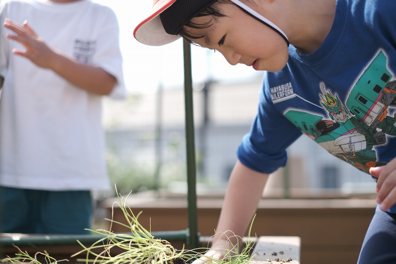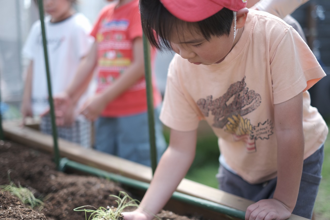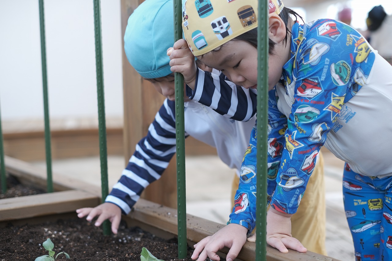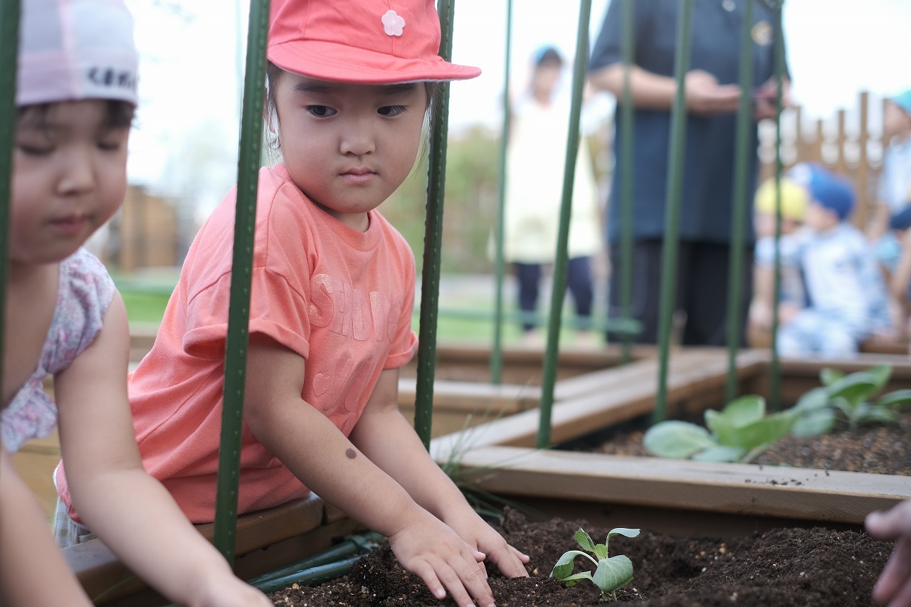 すみれ、れんげ組【3,4歳児】 秋野菜の苗植え